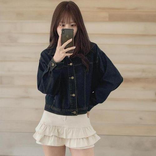 [신상오픈런]여성 루즈핏 세미크롭 데님 자켓 워싱 코튼 키치무드