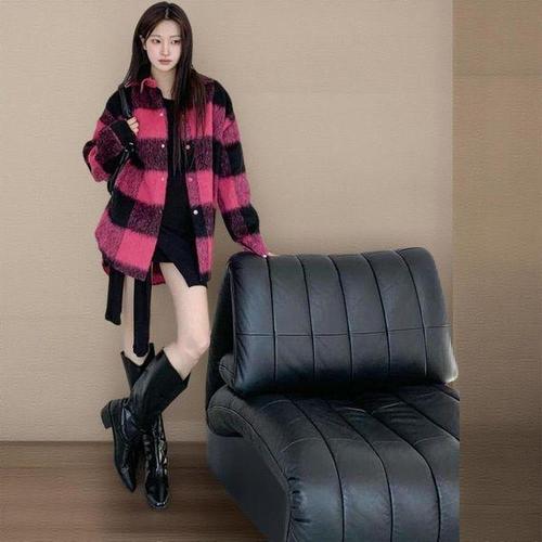 [신상오픈런]여성 루즈핏 체크무늬 퍼 자켓