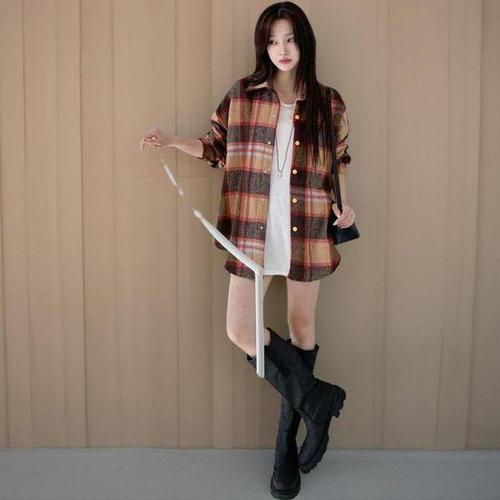 [신상오픈런]여성 체크 패턴 오버핏 셔츠 자켓 데일리 스타일