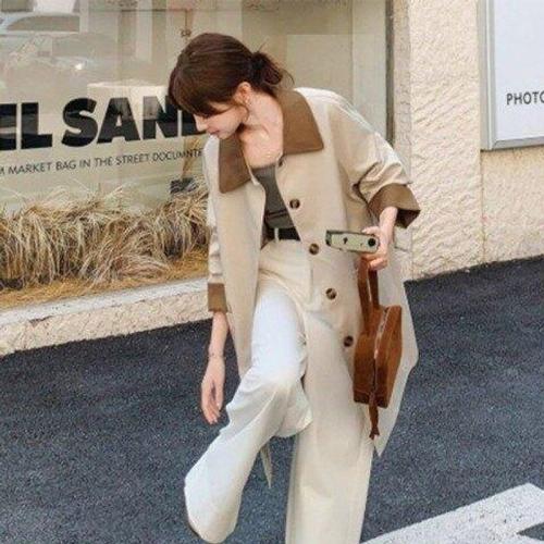 [페리엠]배색 트렌치 가을 코트 루즈핏 그레이즈코트