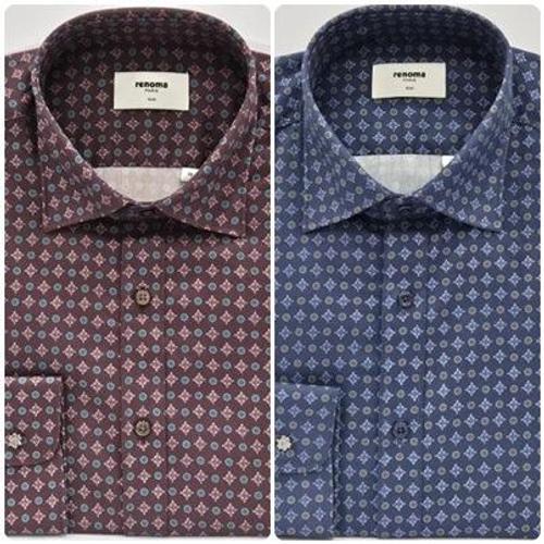 [레노마셔츠]슬림핏/ 스판/ 기하학 올오버 프린트 긴소매 셔츠 RPFSL1571 NY_US