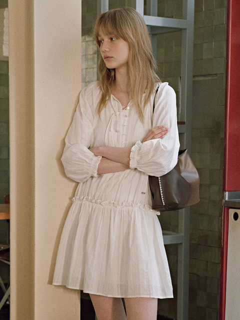 [오스트카카] 핀턱 볼륨 원피스 화이트