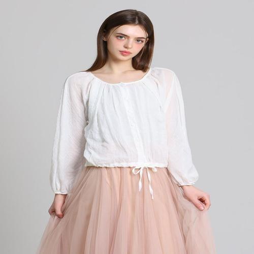 [오조크][오조크(OZOC)] 스트링 셔링 포인트 벌룬소매 블라우스 (택가격 79000원)