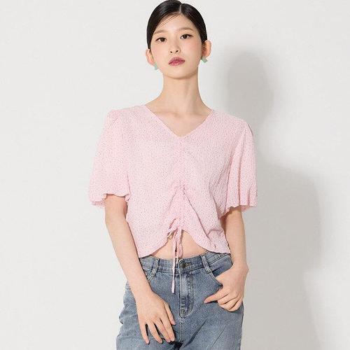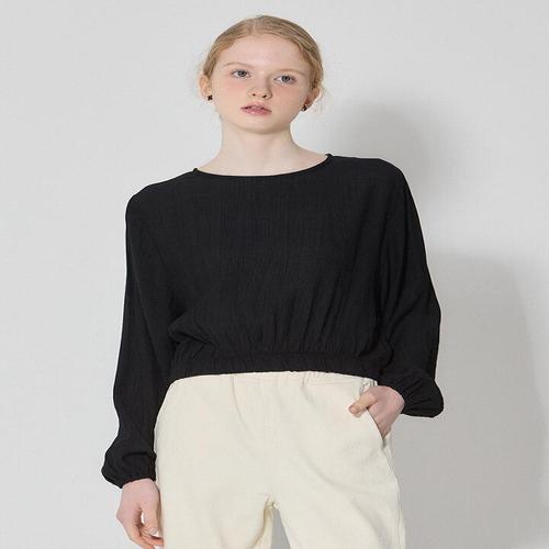 [오조크]밑단 밴딩 주름 크롭 블라우스