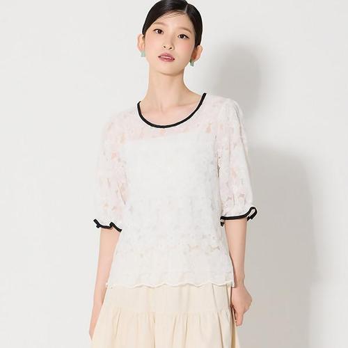 [오조크][오조크(OZOC)] 블랙트리밍 레이스 블라우스 (택가격 59000원)