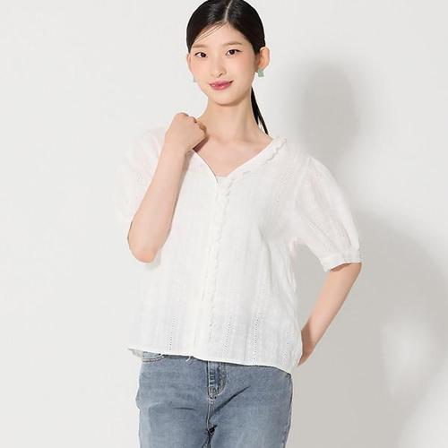 [오조크] 클로버 펀칭 랩스타일 단추 블라우스 (K75-81610)