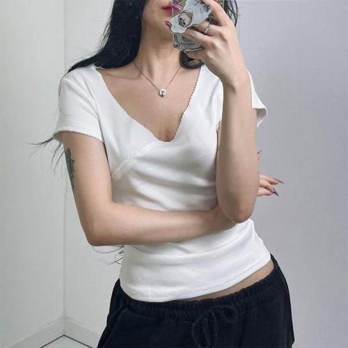 [엄지척]오프숄더가능 사선 딥브이넥 슬림핏 기본 티셔츠_19598249_667501