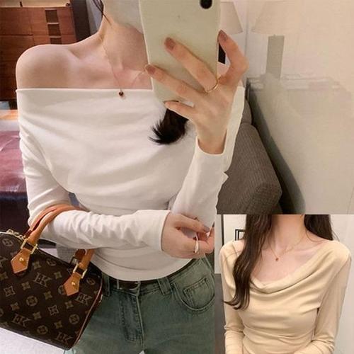 [엄지척]여성 슬림핏 오프숄더 티셔츠 언발란스 긴팔티셔츠_19613400_667501