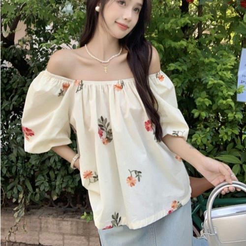 러블리 플라워 오프숄더 퍼프 반팔 블라우스