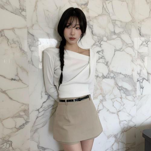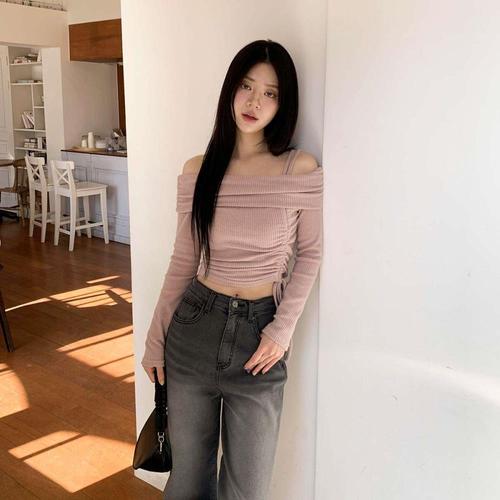 |CCTA049|여성 트렌디 오프숄더 여리핏 골지 니트 탑