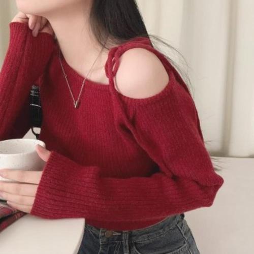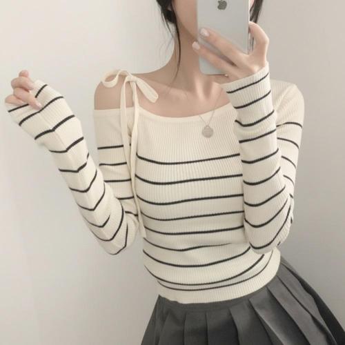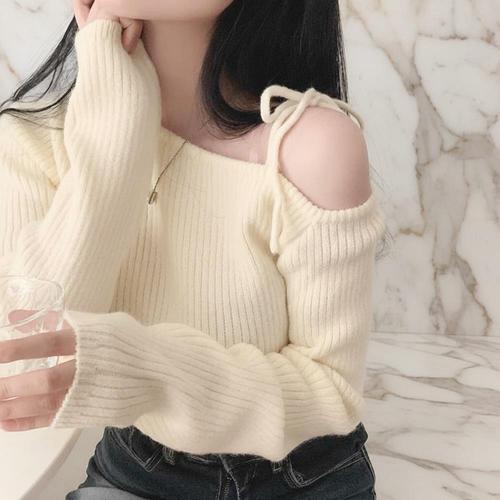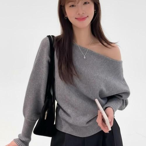 [신상오픈런]여성용 봄가을 슬림핏 오프숄더 긴팔 니트 (46201930)