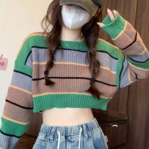 [에이치플러스몰]유니크 패턴 오프숄더 크롭 니트 가을 도톰 여친룩