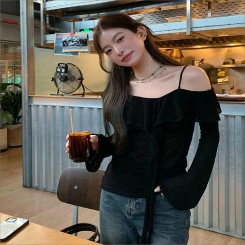 [오너클랜]인기상품 프릴 여자 티셔츠 긴팔 오프숄더 리본타이 블라우스 [WFLDI35_251230]