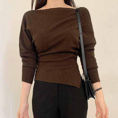[옷자락]여자 오프숄더 가오리핏 슬림핏 사선 트임 가을 니트