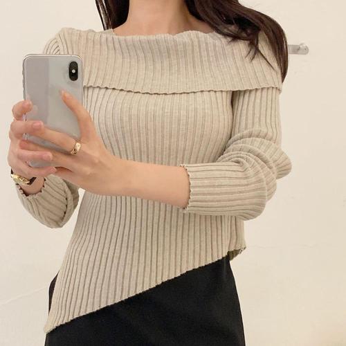 [옷자락]여자 가을 데이트룩 골지 오프숄더 사선 긴팔 니트