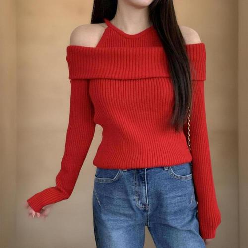 [신상오픈런]여성 가을 골지 오프숄더 긴팔 니트 데일리룩