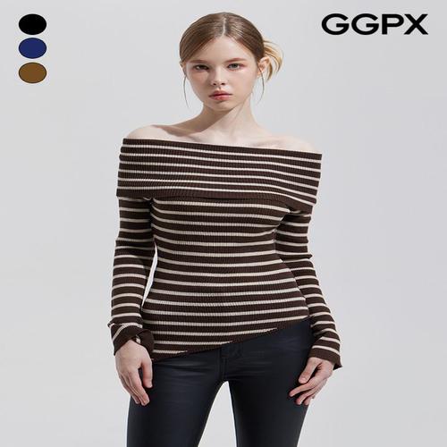 [GGPX]슬림핏 스트라이프 언발 오프숄더 니트 (GPAKP020F)
