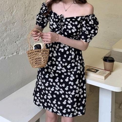 퍼프 인기 주름 원피스 오프숄더 감성 여름 미니 원피