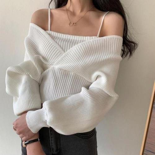 어반룩북 오픈 오프숄더 스트랩 러블리 레이 니트 티셔츠