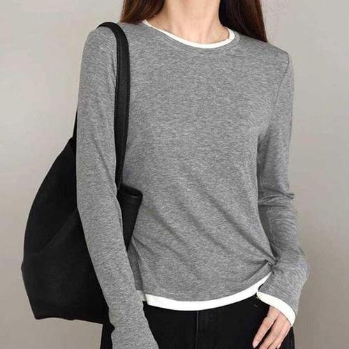 [하프클럽/]여성 언발란스 오프숄더 배색 레이어드 슬림 티셔츠
