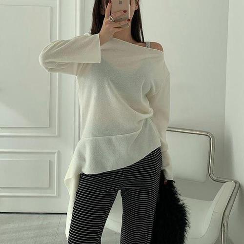 [셀러허브_여성트랜드패션]Rly 루즈핏 오프숄더 단가라 긴팔티 기본 데일리 티셔