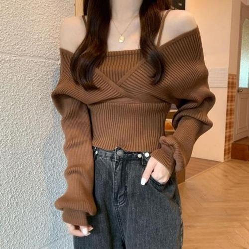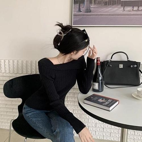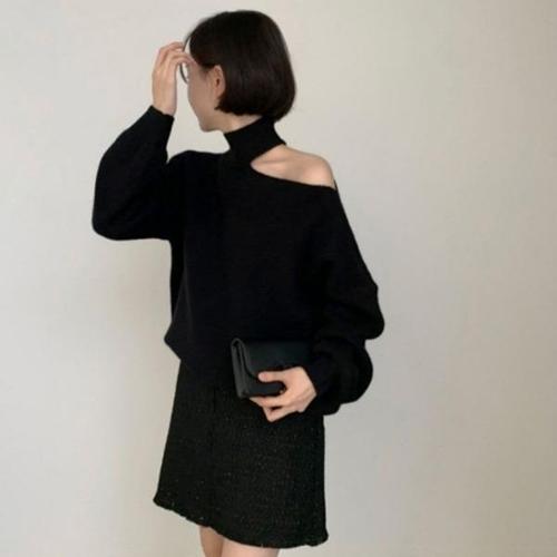 [엄지척]여자 한쪽 오픈 오프숄더 긴팔 니트티 가을 겨울 니트_19681694_667501