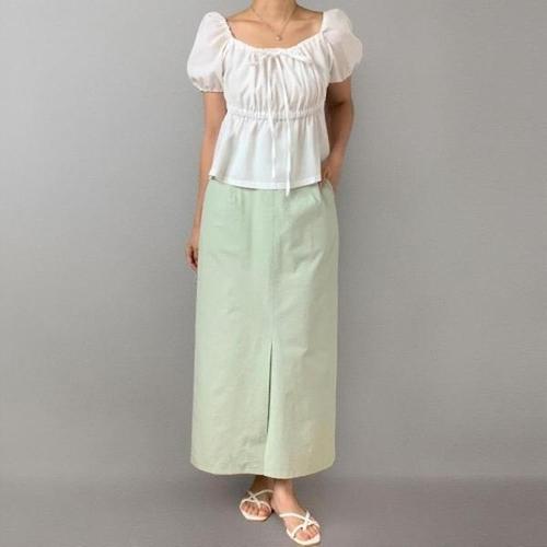 [신상오픈런]|KMH4178|여성 코튼 셔링 스트랩 오프숄더 반팔 블라우스_23330368_597559