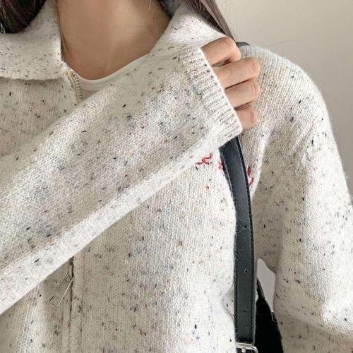 [신상오픈런]여성 자수 포근한 두께 아방핏 카라넥 니트 집업