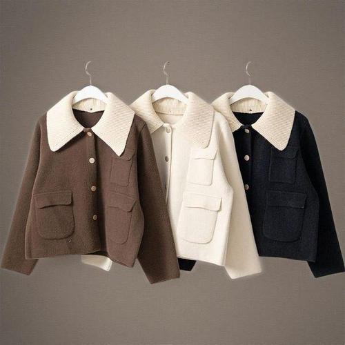 [신상오픈런]여성 투웨이 카라 넥 멀티 포켓 부클 니트 가을 숏 자켓