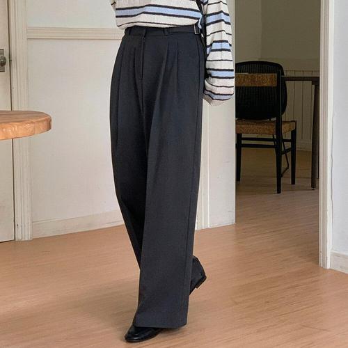 [옷자락] 여자 정장 오피스룩 투턱 루즈 와이드핏 커버업 슬랙스