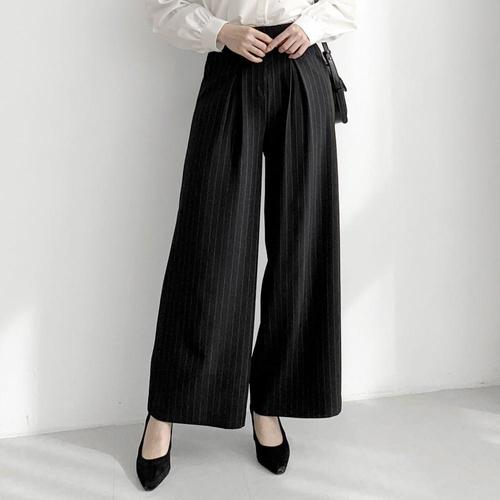 [옷자락] 여자 오피스룩 핀턱 와이드 스트라이프 뒷밴딩 슬랙스