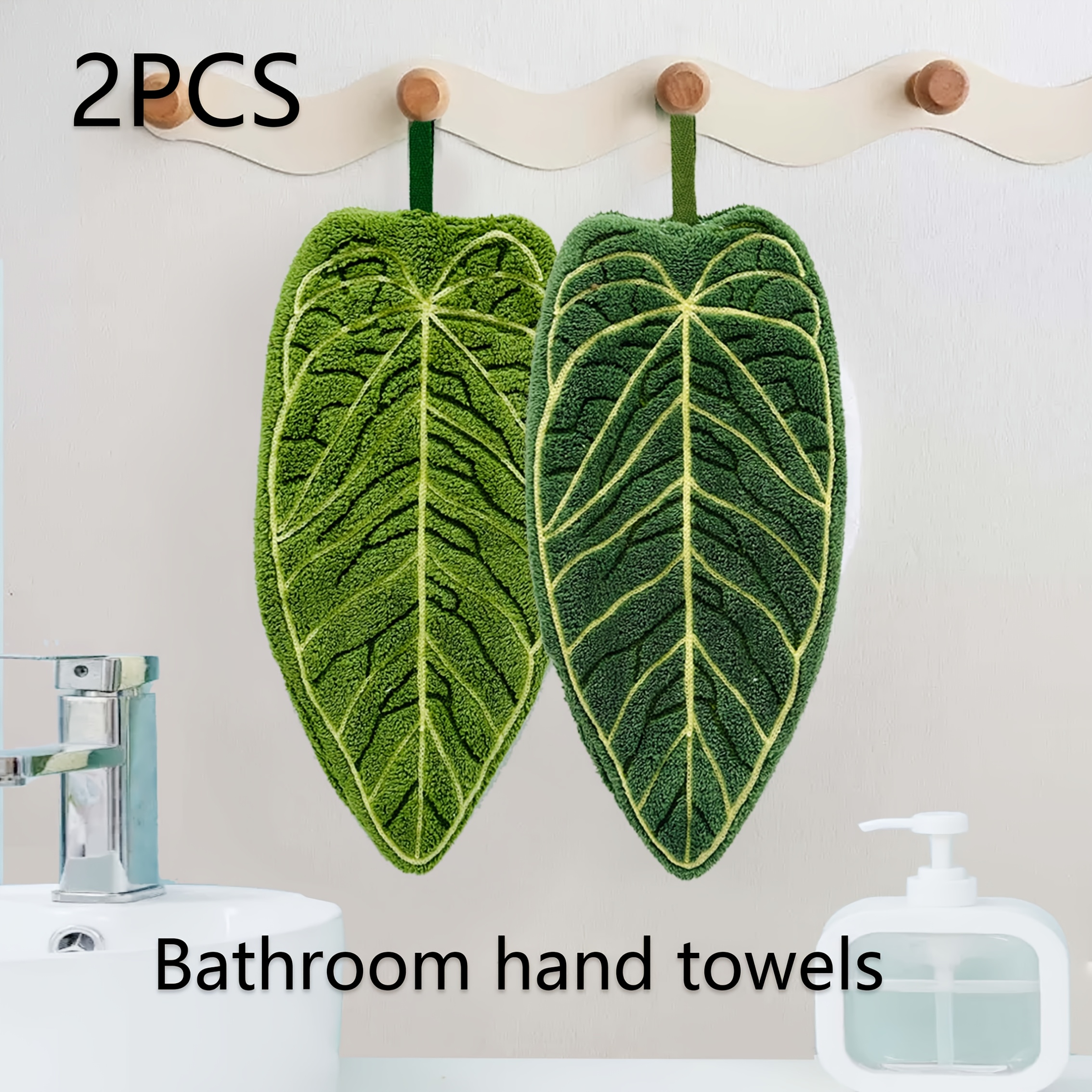 TEMU 나뭇잎 모양 손끝 타월 2개입 팩 (2개) - 욕실, 주방, 샤워, 손용 극세사 걸이형 목욕 타월 - 젖은 티슈용 걸이형 홀더가 있는 흡수성 컴팩트 나뭇잎 디자인, 위생적인 극세사 블라스트 오프 이미지
