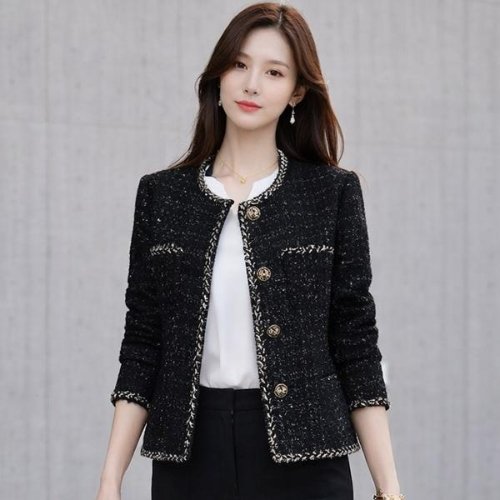 2026 트위드 코리아 고품질 숏 트위드 재킷 여성 한국 의류 싱글 브레스티드 레이디 블레이저 올매치 캐주얼 코트 탑
