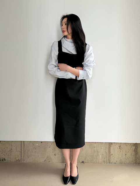 [하프클럽/올리비아하슬러]네이비 하슬러 줄무늬 배색 원피스 OHCMOP302
