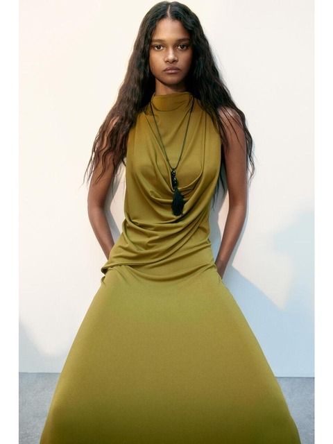 [에이치엔엠] 드레이프 맥시 드레스 올리브 그린 1336286001