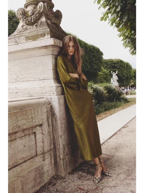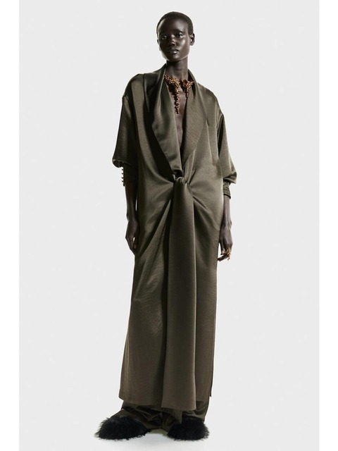 [에이치엔엠] 새틴 롱 드레스 다크 올리브 그린 1319761001