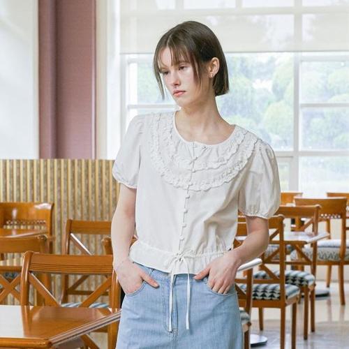 [올리브데올리브] OW4MB533_밑단 스트링 러플 블라우스