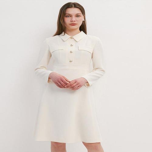 [올리브데올리브]핏앤 플레어 오픈 칼라 원피스 OW4SO2100