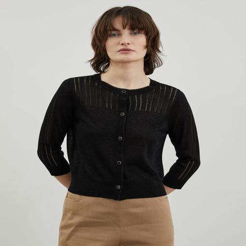 올리비아로렌 메탈 배색 니트 가디건 VOBBC4M4141