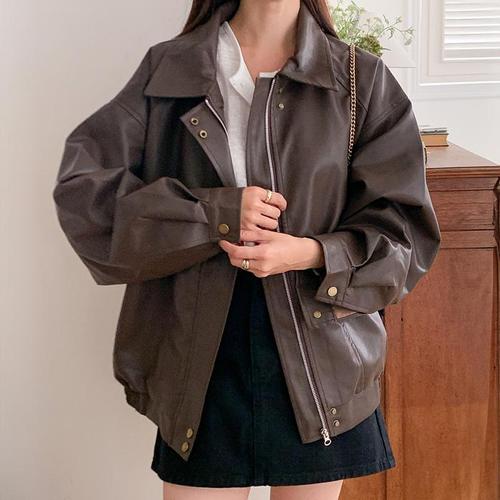 [올리비에스클로젯] 레더 카라 집업 자켓_O2510JK024C