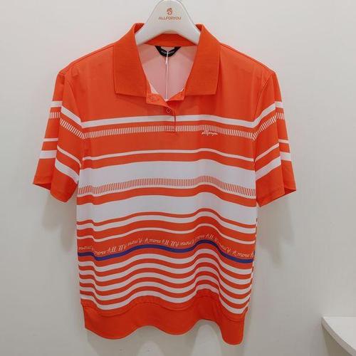 [올포유]여름 여성 기본카라 금속자수 티셔츠(주황,화이트) AWTYO3361