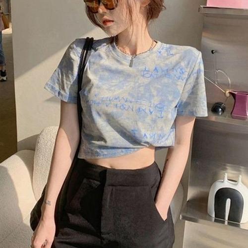 [다잇템_패션]여성 나염 염색 피그먼트 반소매 티셔츠