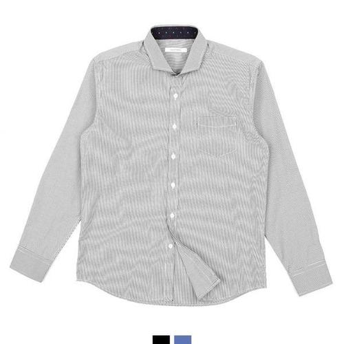 [리빌모아]남자 캐주얼 스트라이프 와이드카라 셔츠 KSM-SHA-J0419026-블랙