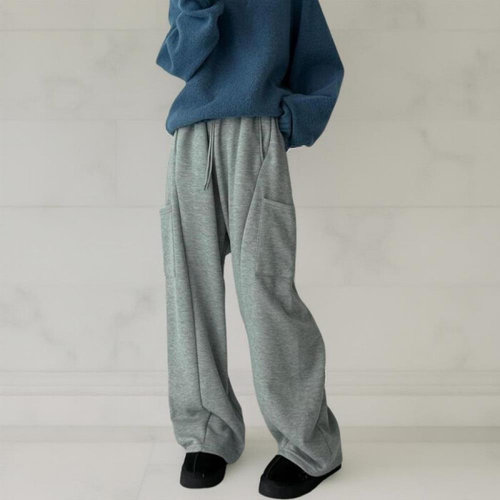 옷자락 / 여성 루즈핏 기모 와이드 트레이닝 바지 밴딩 카고 팬