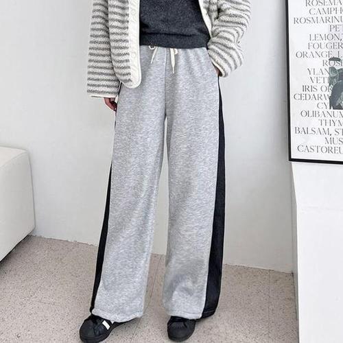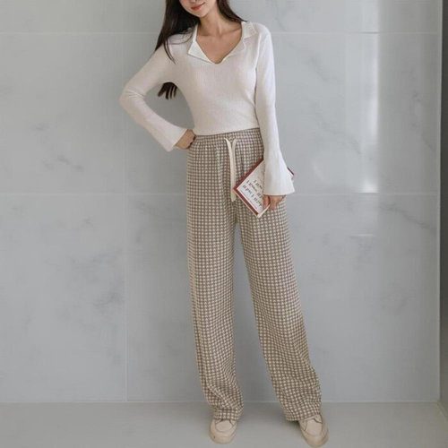 옷자락 / 여성 가을 두꺼운 홈웨어 헤링본 세미 와이드 일자 팬
