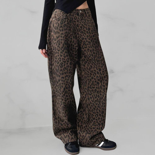 옷자락 / 여성 레오파드 벌룬 와이드핏 루즈 스트리트 가을 팬