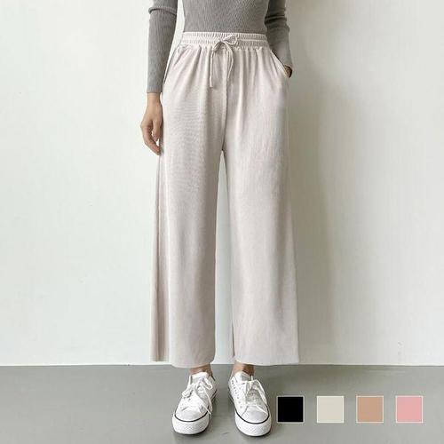 [셀러허브_여성트랜드패션]ONM 편한 홈 웨어 바지 허리 밴딩 플리츠 와이드 팬