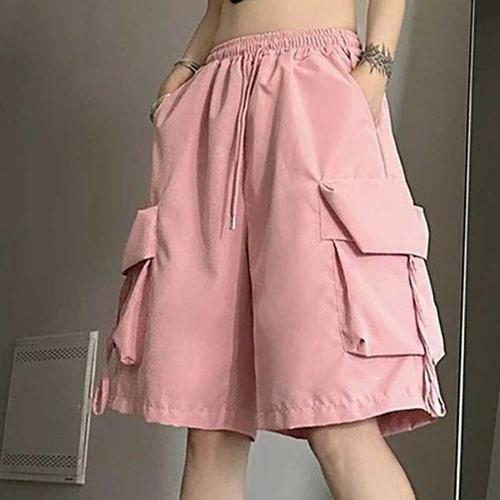 [셀러허브_여성트랜드패션]ONM 와이드핏 빅포켓 카고 반바지 여성 여름 밴딩 팬
