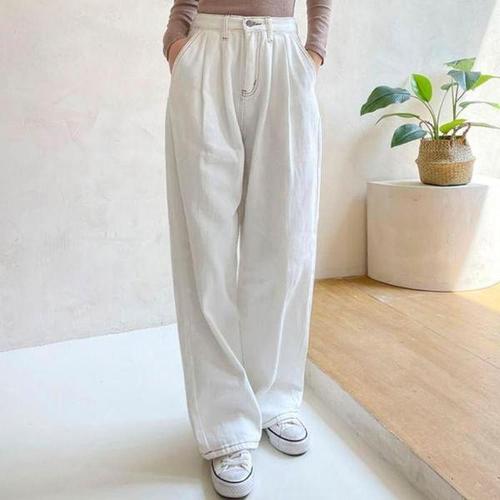 [셀러허브_여성트랜드패션]ONM 세미와이드 코튼 롱 팬츠 퓨어 와이드팬츠 여성팬