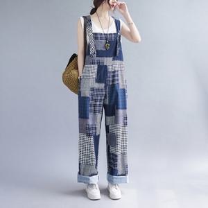 |CMP8CEA|여성 체크 패턴 와이드 점프수트 허리 조절 가능 캐주얼 의상